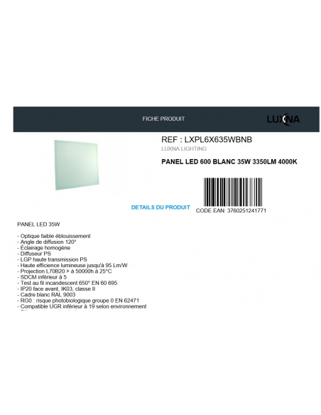 Dalle LED du fabricant français LUXNA Lighting.
