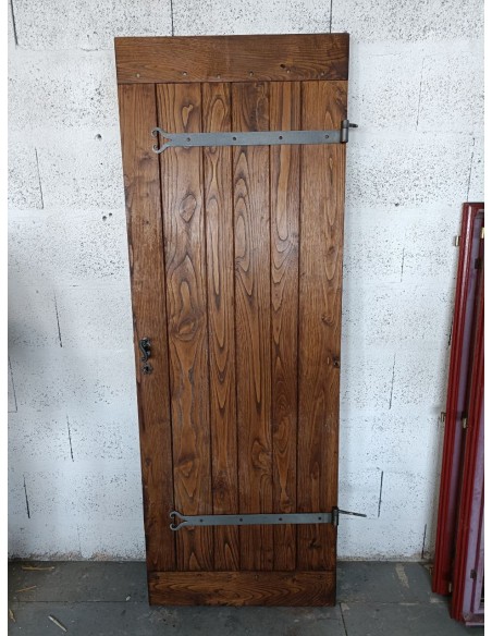 Porte en bois avec une face en pin massif et l'autre face en plaquage bois.