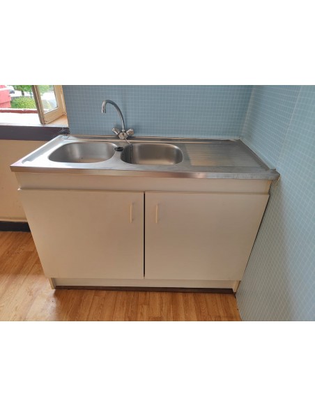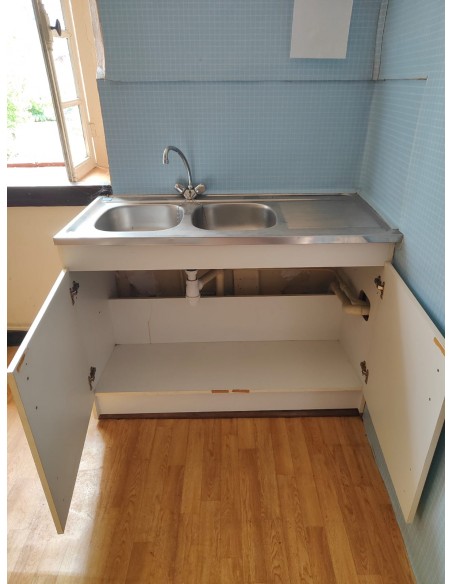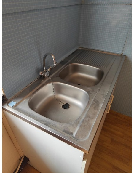 Evier inox + meuble rangement